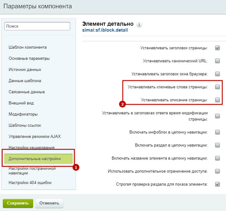Шаг 1. Прописать SEO в настройках ИБ.