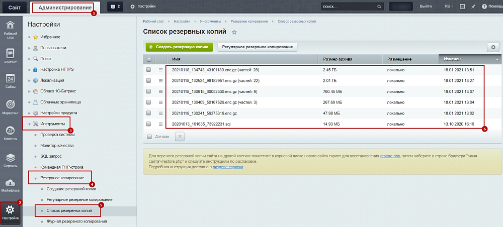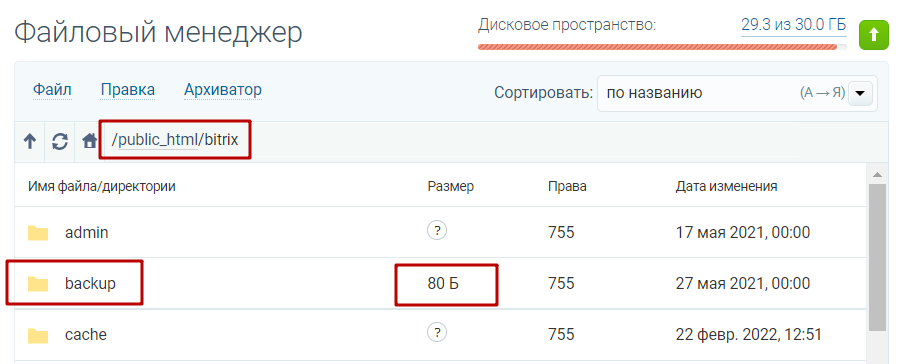 Не сохраняется информация, картинки на сайте? ошибки при создании или восстановлении резервной копии 1С-Битрикс (возможно закончилось место на хостинге)