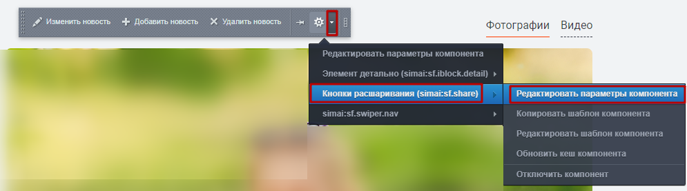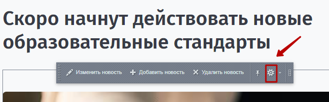 Шаг 1. Во включенном режиме правки навести курсор мыши на область элемента (на детальной странице) и нажать на шестерёнку.