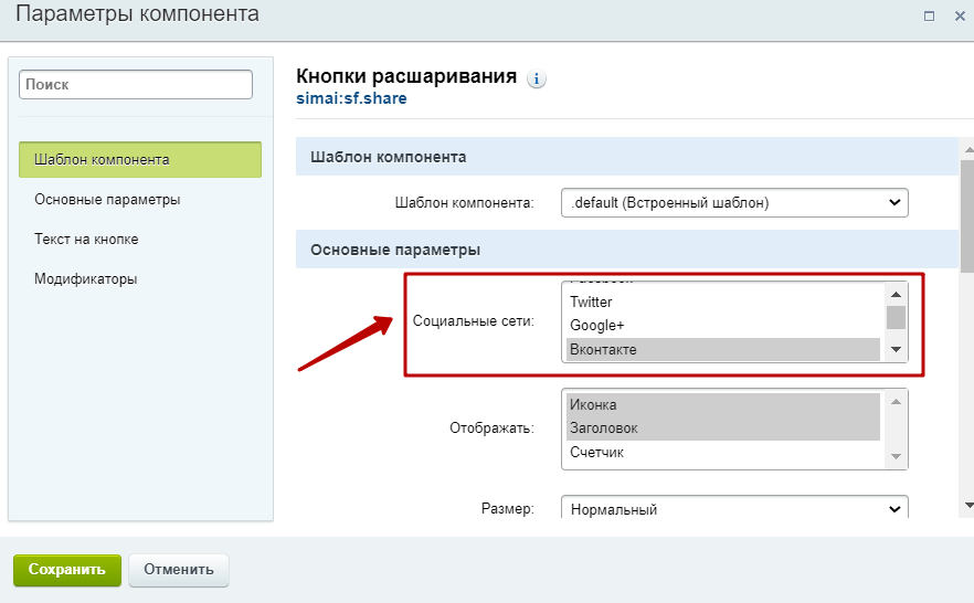- Как отключить возможность расшаривания разделов, страниц, элементов в социальные сети Facebook*, Twitter?