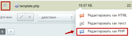 Шаг 3. Открыть файл template.php в режиме редактирования PHP.