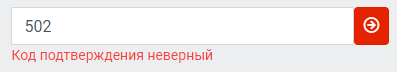Если код введён неверно, отобразится соответствующее сообщение: