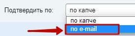 Шаг 4. У параметра "Подтвердить по" выбрать значение "по e-mail" (также может называться "по почте").