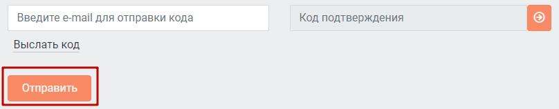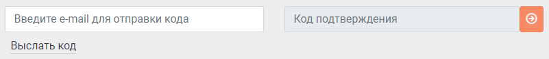 Пользователю сайта необходимо указать в поле "Введите e-mail для отправки кода" корректный адрес электронной почты, на которую нужно отправить код. После этого нажать "Выслать код". Пока не введен корректный e-mail и не выслан код, поле для ввода кода подтверждения будет недоступно.