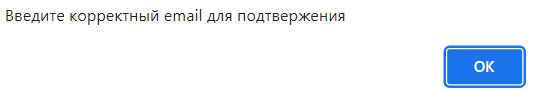 Если e-mail введен некорректно, появится уведомление: