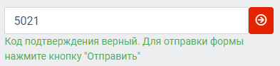 После того как код отправлен на почту, его необходимо скопировать из письма, ввести в поле "Код подтверждения" и нажать на кнопку со стрелочкой  .