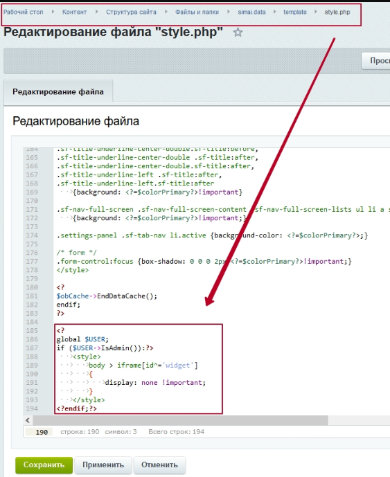 Шаг 1. Открыть файл /simai.data/template/style.php.
