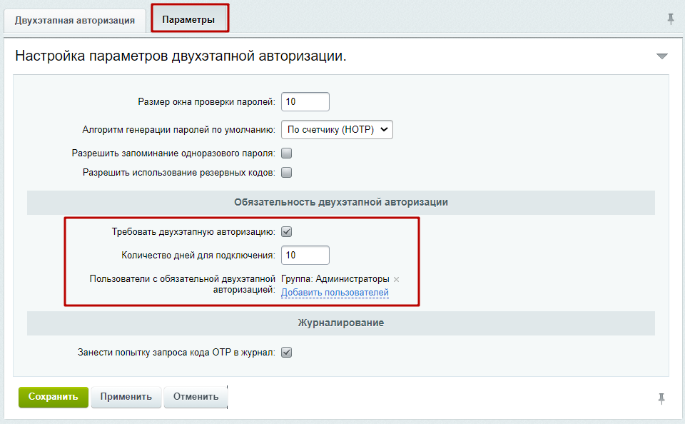 Таким образом, авторизация на сайте будет происходить в два этапа. На первом этапе вводим логин и пароль, на втором одноразовый пароль.