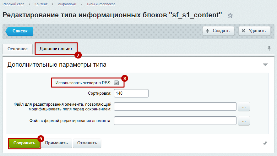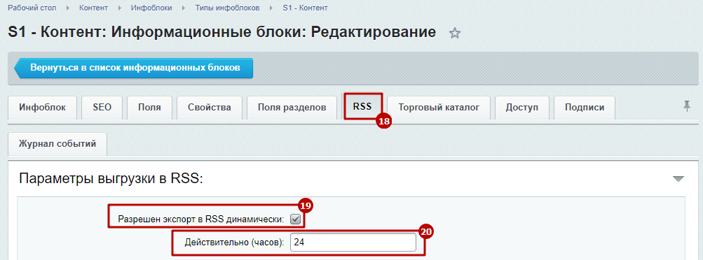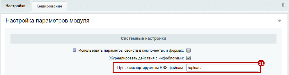 Шаг 6. Выполнить настройки экспорта в RSS для конкретного инфоблока.