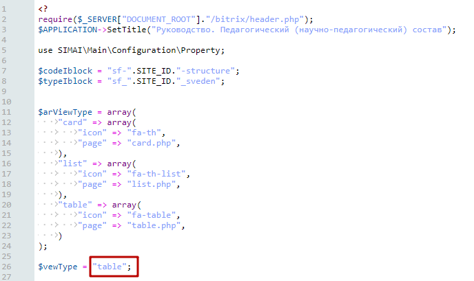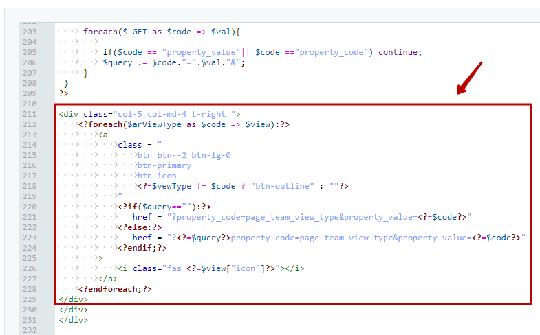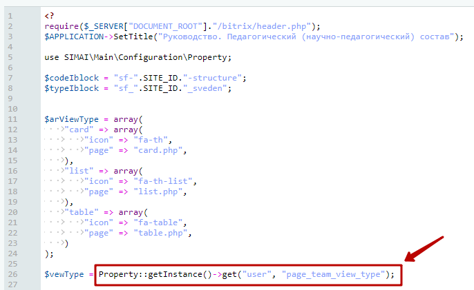 Шаг 4. Заменить код Property::getInstance()->get("user", "page_team_view_type");