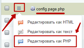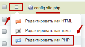 Шаг 3.2. Открыть файл config.site.php в режиме редактирования PHP-кода.
