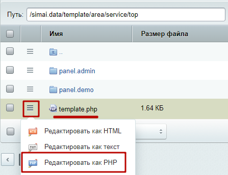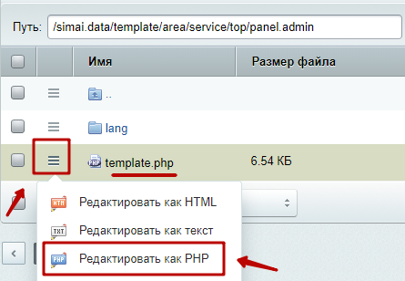 Шаг 2.2. Открыть файл template.php в режиме редактирования PHP-кода.