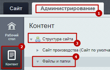 Шаг 1.1. Перейти в Администрирование > Контент > Структура сайта > Файлы и папки.