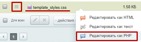 Шаг 3. Открыть в режиме редактирования PHP-кода файл template_styles.css.