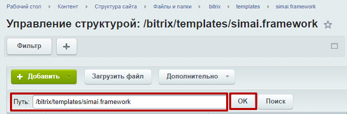 Шаг 2. Найти папку /bitrix/templates/simai.framework.