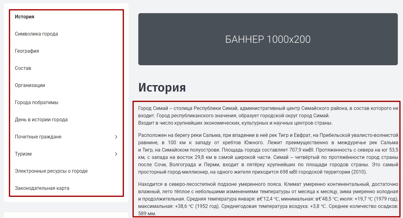 Например, необходимо изменить цвет текста в боковом меню и на статичных страницах сайта: