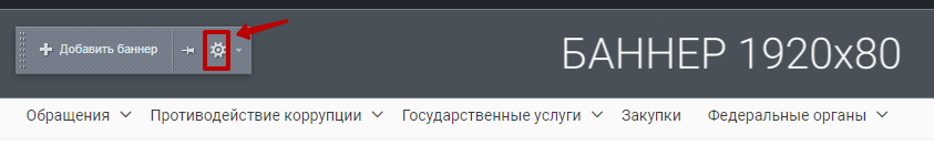 Шаг 2. Навести курсор мыши на область баннеров и на появившейся панели нажать на шестерёнку.