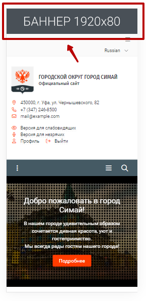 Для того чтобы отобразить верхний баннер шапки в мобильной версии сайта необходимо выполнить следующие шаги: