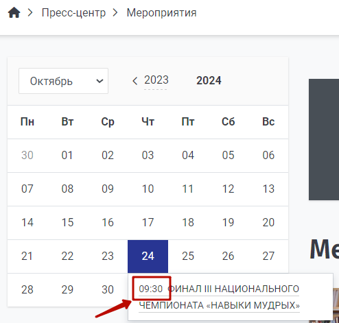 Шаг 4. В публичной части сайта перейти в раздел "Мероприятия".