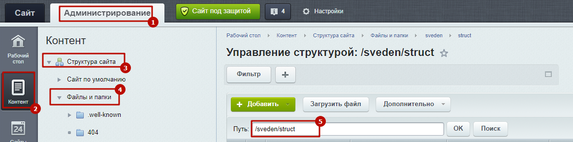 Если сайт размещен в корне, то папка будет в /sveden/struct.