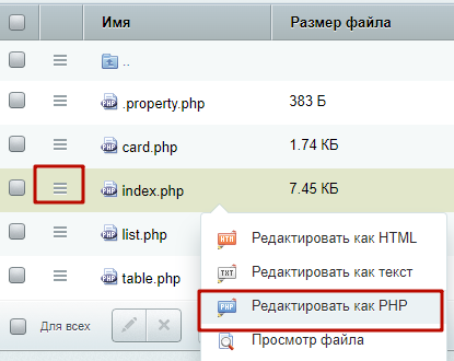 Шаг 2. Открыть файл index.php в режиме PHP-кода.