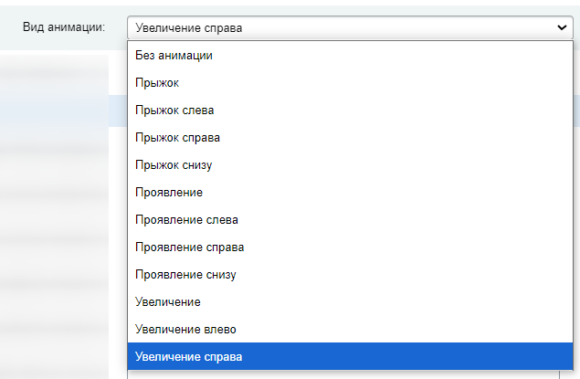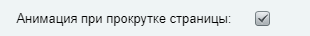 При активном параметре "Анимация при прокрутке страницы" появятся дополнительные параметры "Вид анимации" и "Задержка при появлении, мс".