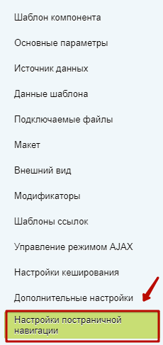 При отмеченной опции навигация по элементам будет выведена внизу страницы, под списком.