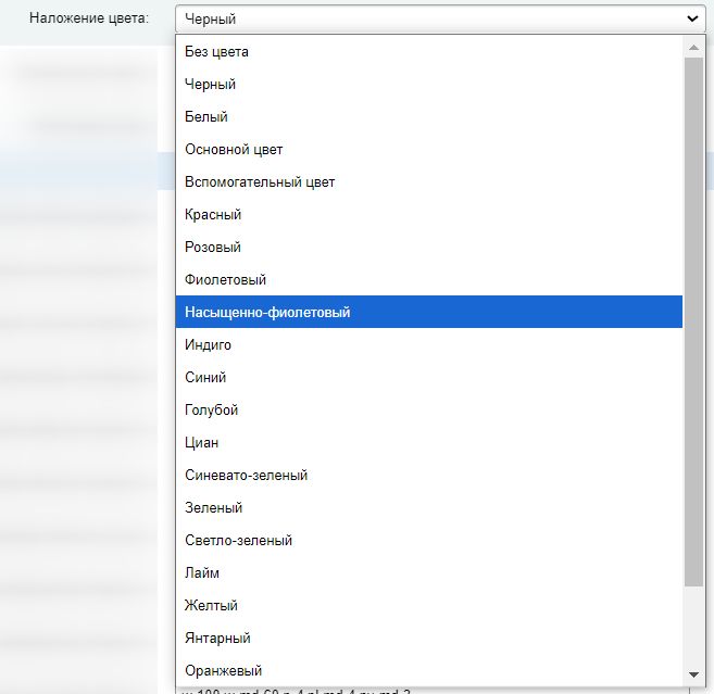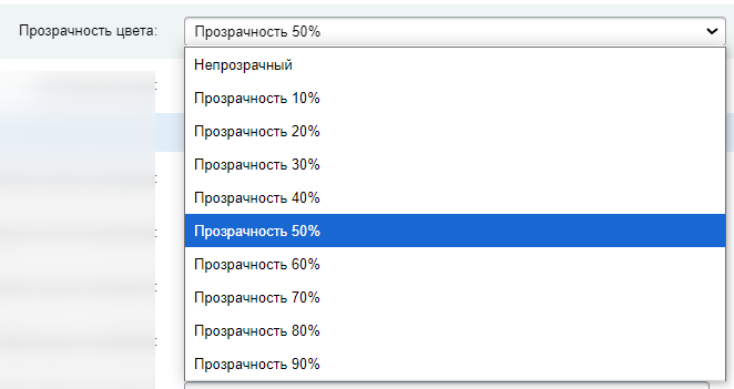 При выборе значение цвета, кроме "Без цвета", появится дополнительный параметр "Прорачность цвета".