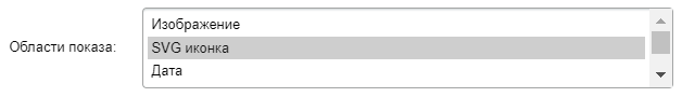 Если в параметре "Области показа" выбрано значение "SVG иконка", то отобразится параметр "Источник данных для иконки", в котором можно выбрать источник из свойств элемента.