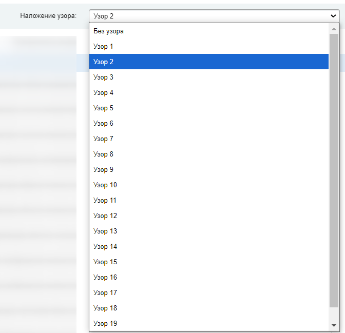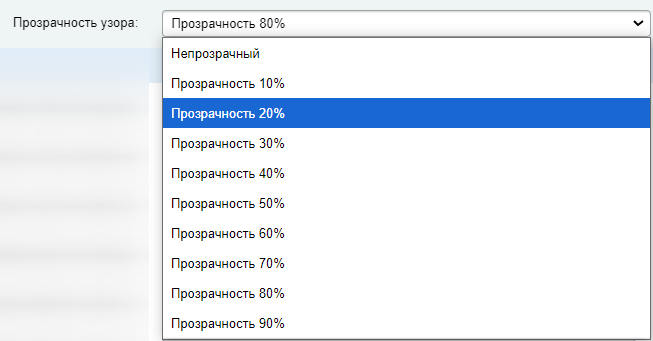 При выборе значение узора, кроме "Без узора", появится дополнительный параметр "Прорачность узора".
