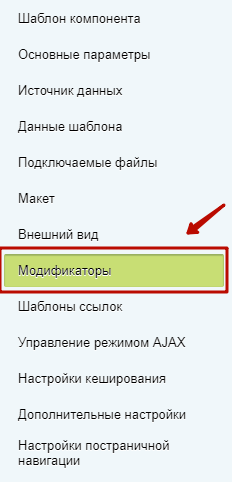 Если параметре "Области показа" выбрано значение "Раздел", то во вкладке "Модификаторы" появятся параметры "Модификаторы области ссылки на раздел элемента" и "Модификаторы ссылки на раздел элемента".
