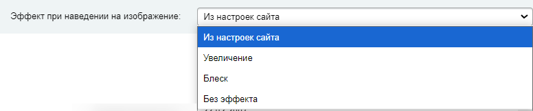 При выборе значения "Из настроек сайта" настройка будет браться из настроек "Сайт" > "Изображения" > "Эффект при наведении на изображение".