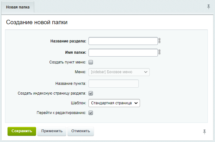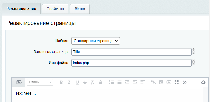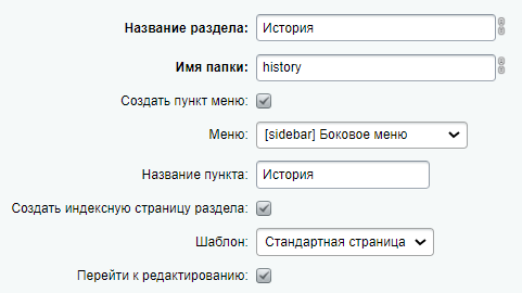 Если была установлена галочка "Перейти к редактированию", то после сохранения изменений откроется файл редактирования индексной (главной) страницы нового раздела.