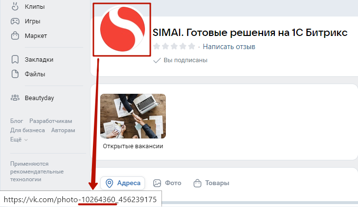 Цифры id группы в VK видны в ссылке при наведении на аватарку, например: