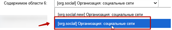 Если ранее вы добавляли иконки соц.сетей согласно данной инструкции "Как добавить ссылку с иконкой (логотипом) на социальную сеть, которой нет в настройках сайта?" и добавляли блок [org.social.new], пожалуйста, в параметрах грида подвала/шапки измените содержимое области на блок [org.social], в этом случае вы увидите все иконки социальных сетей, у которых указали ссылки в настройках сайта.
