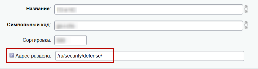 Символьный код раздела отобразится в поле: