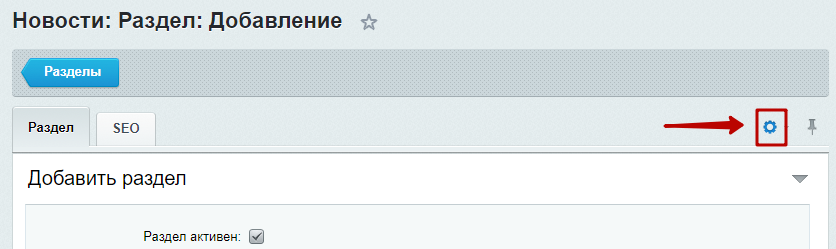 - Откройте на редактирование любой элемент (или раздел соответственно).
