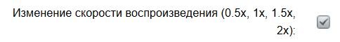 При активной галочке параметра "Изменение скорости воспроизведения (0.5x, 1x, 1.5x, 2x)" будет отображаться элемент управления для изменения скорости воспроизведения видео.