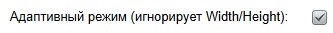 При активной галочке параметра "Адаптивный режим (игнорирует Width/Height)" область вывода видео будет адаптивно изменяться в зависимости от ширины блока и страницы.