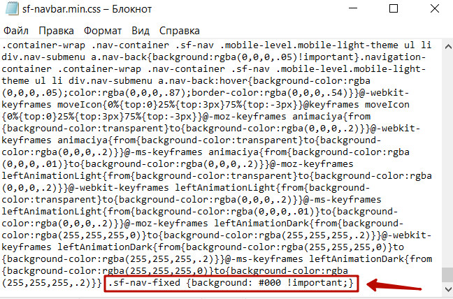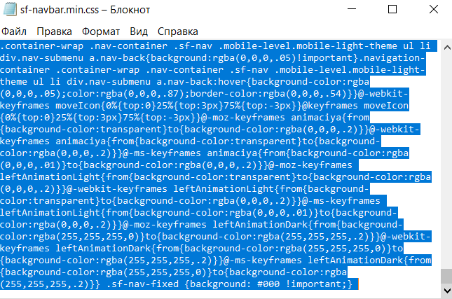 Шаг 4. Открыть на компьютере скачанный файл sf-navbar.min.css в текстовом редакторе, например, в блокноте.